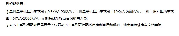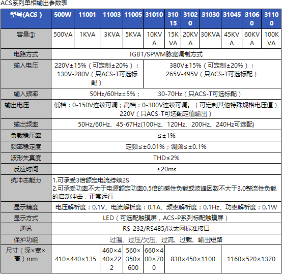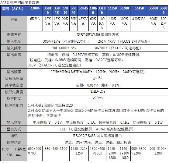 可定制寬電壓范圍、寬頻率范圍輸入,輸出可做定值(220V、380V可定制特殊電壓值)輸出(ACS-T系列)。